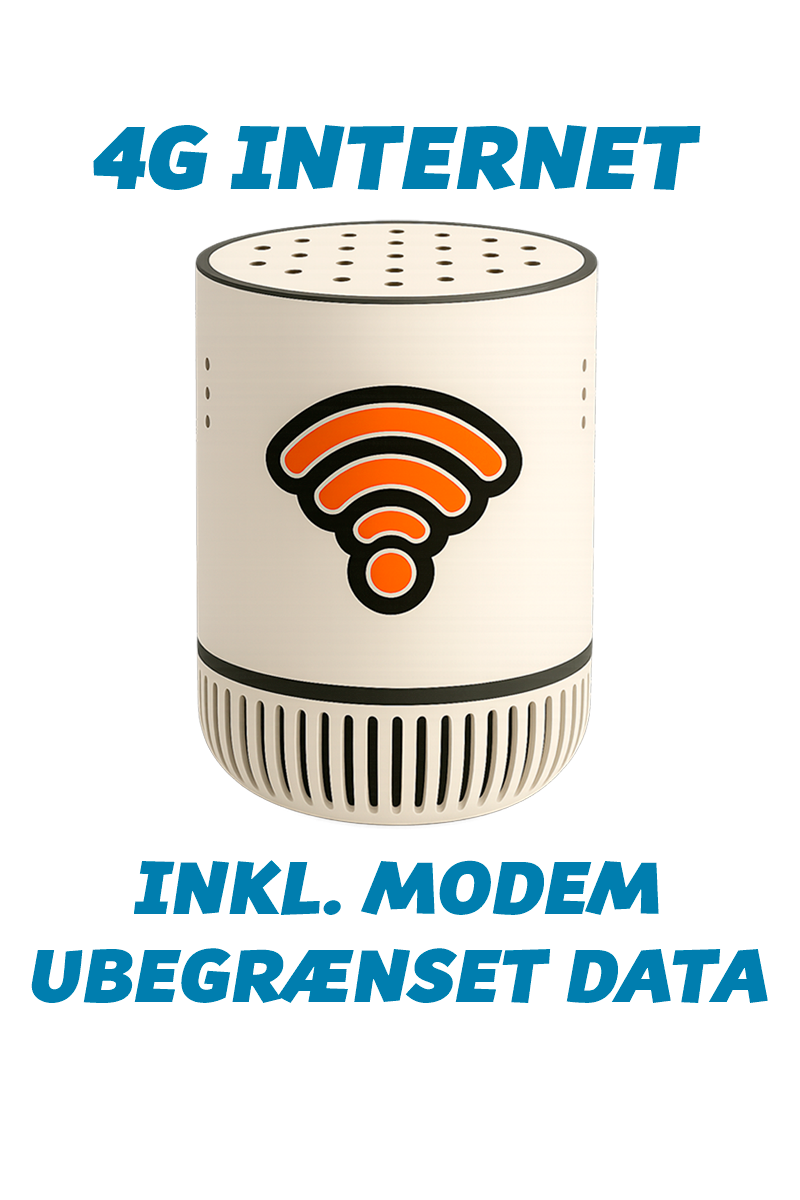 Med vores 4G abonnement får du FRI internet i hele DANMARK. ( Inkl. Modem )